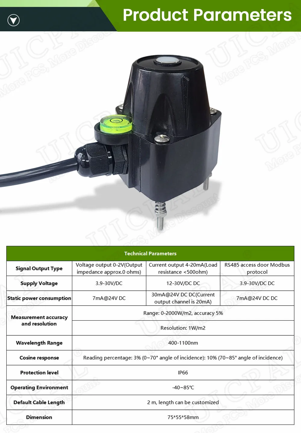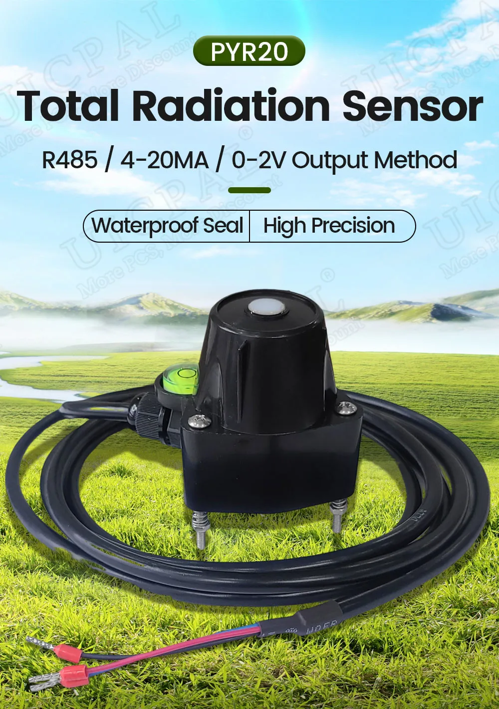 0-2000W Total Solar Radiation Sensor RS485 0-2V 4-20MA 400-1100nm Light Detector Sunshine Radiation Sensor Transmitter PyranomerThe PYR 20 solar radia…