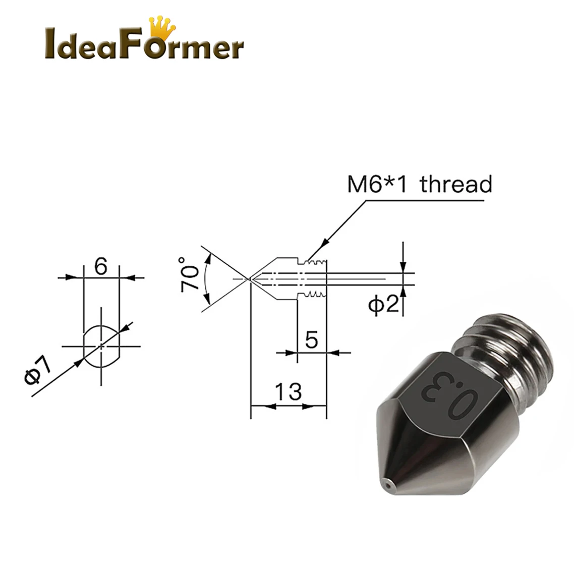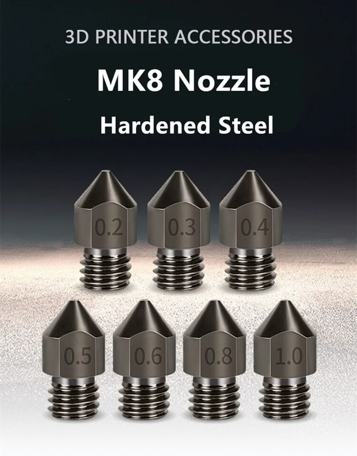 1 Pcs or 3 Pcs MK8 M6 thread Hardened Steel Nozzle.