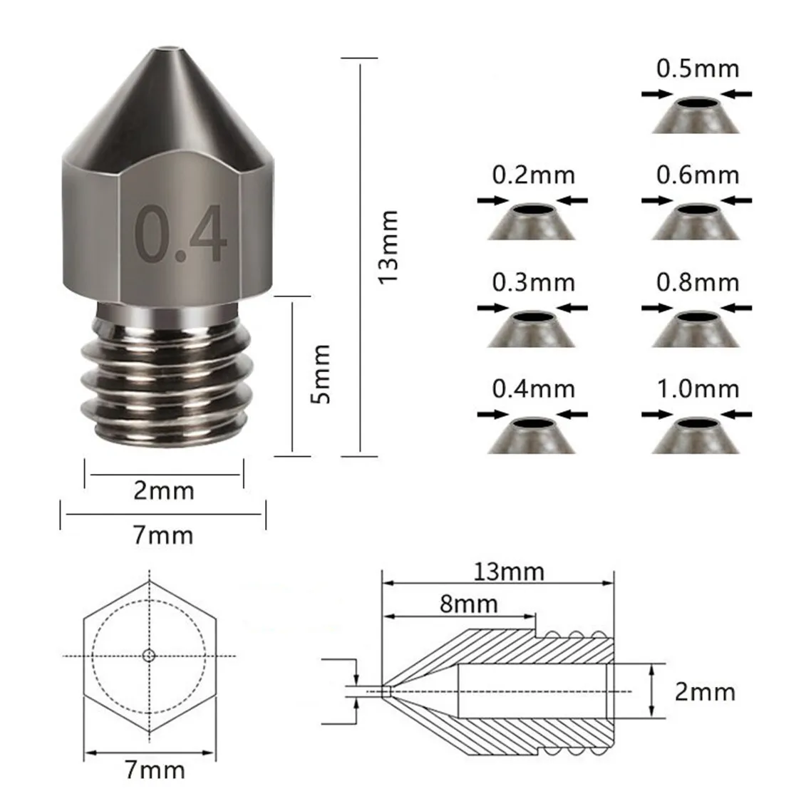 Product details:Name: 1/3Pcs MK8 Nozzle Hardened Steel M6 Corrosion-Resistant Extruder 0.4/0.6/0.8mm 3D Printer Nozzle For CR10 Ender 3 Sapphire ProMa…