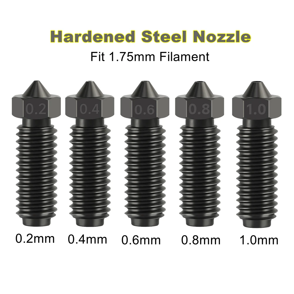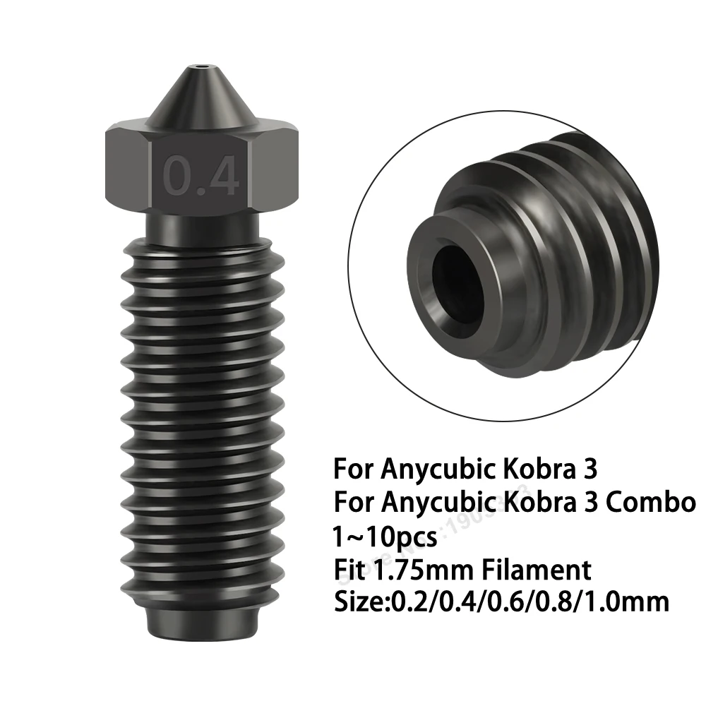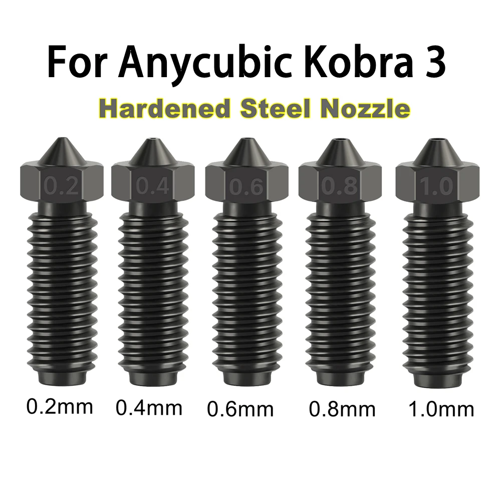 1~5PC High Speed Hardened Steel Nozzle For Anycubic Kobra 3 0.2 0.4 0.6 0.8 1.0mm Mix Size Hard 3D Printer Nozzle For Kobra3 Combo