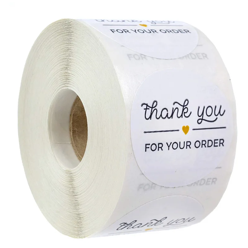 1 inch Diameter. 50 labels per roll. Printed on high quality Tag paper with 'THANK YOU FOR YOUR ORDER' printed in an easy to read black ink. Great for businesses, online retailers, boutiques and small shops to use on bags, tissue, boxes and more. Permanent adhesive that sticks well to most surfaces Multiple Uses: It can be posted on any place that needs thank you stickers, such as greeting cards, flower bouquets, parcels, candy bags, gift wraps.