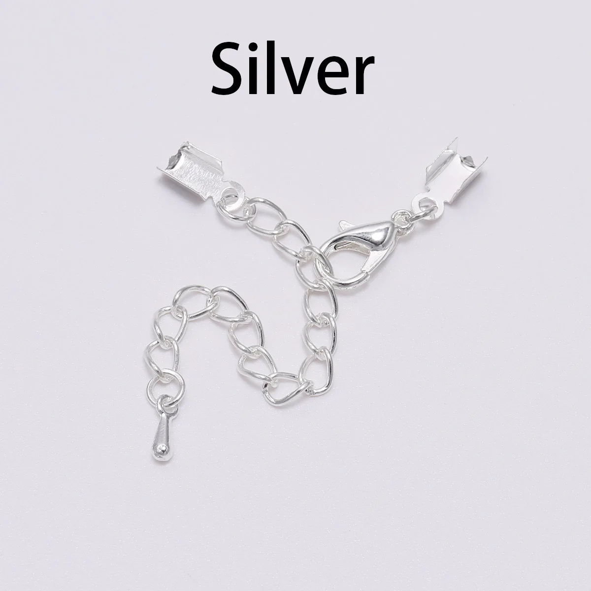 10Pcs/lot Crimp End Caps Bead Lobster Clasps Extended Chains Necklace Connectors String Ribbon Clips For Jewelry Making Supplies