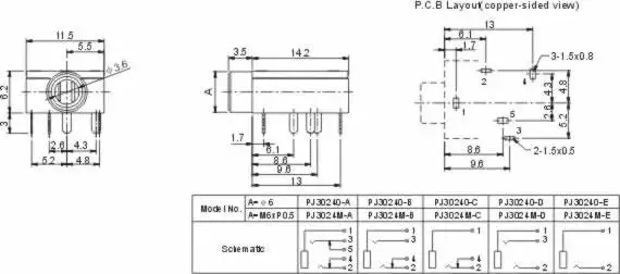 PJ324M 3.5 headphone jack audio video socket audio jack socket 3.5MM headphone jackSpecifications:Size: 14.2 * 11.5 * 6.3mm (excluding nuts and pins s…
