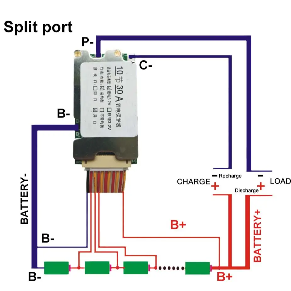 First complete the welding of the B- lead of the protection board to the total negative B- of the battery pack, and then connect the plug of the cable to the socket of the protection board,