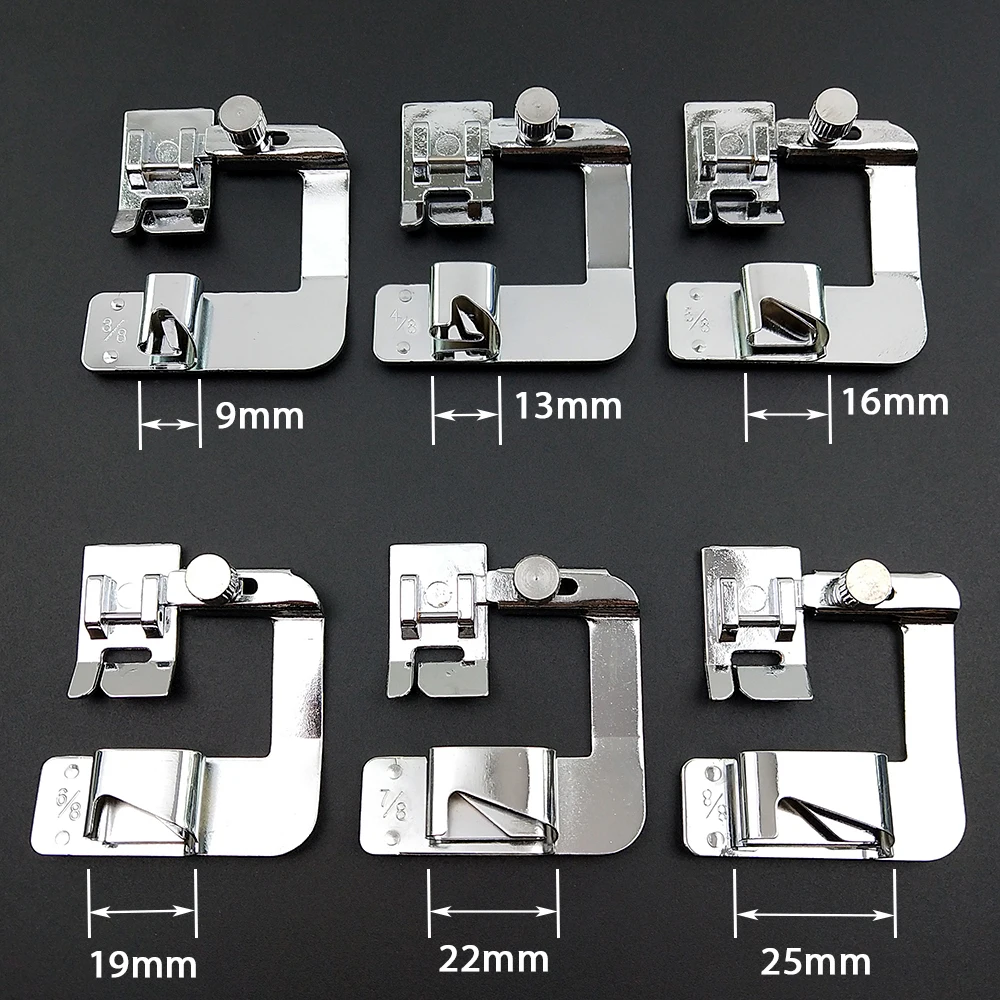 Product Name: Hemming FootSpecifications:3/8 crimping presser foot 9mm ;4/8 crimping presser foot 13mm ;5/8 crimping presser foot 16mm ;6/8 crimping p…