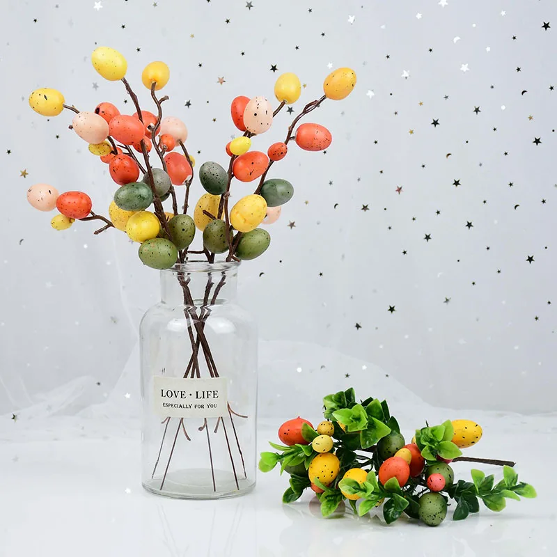 Colorful Easter Eggs Tree Branch DIY Painting Foam Bunny Eggs Easter Decoration For Home Decor Wedding Party Fake Flowers Plants USD 2.12 / p…