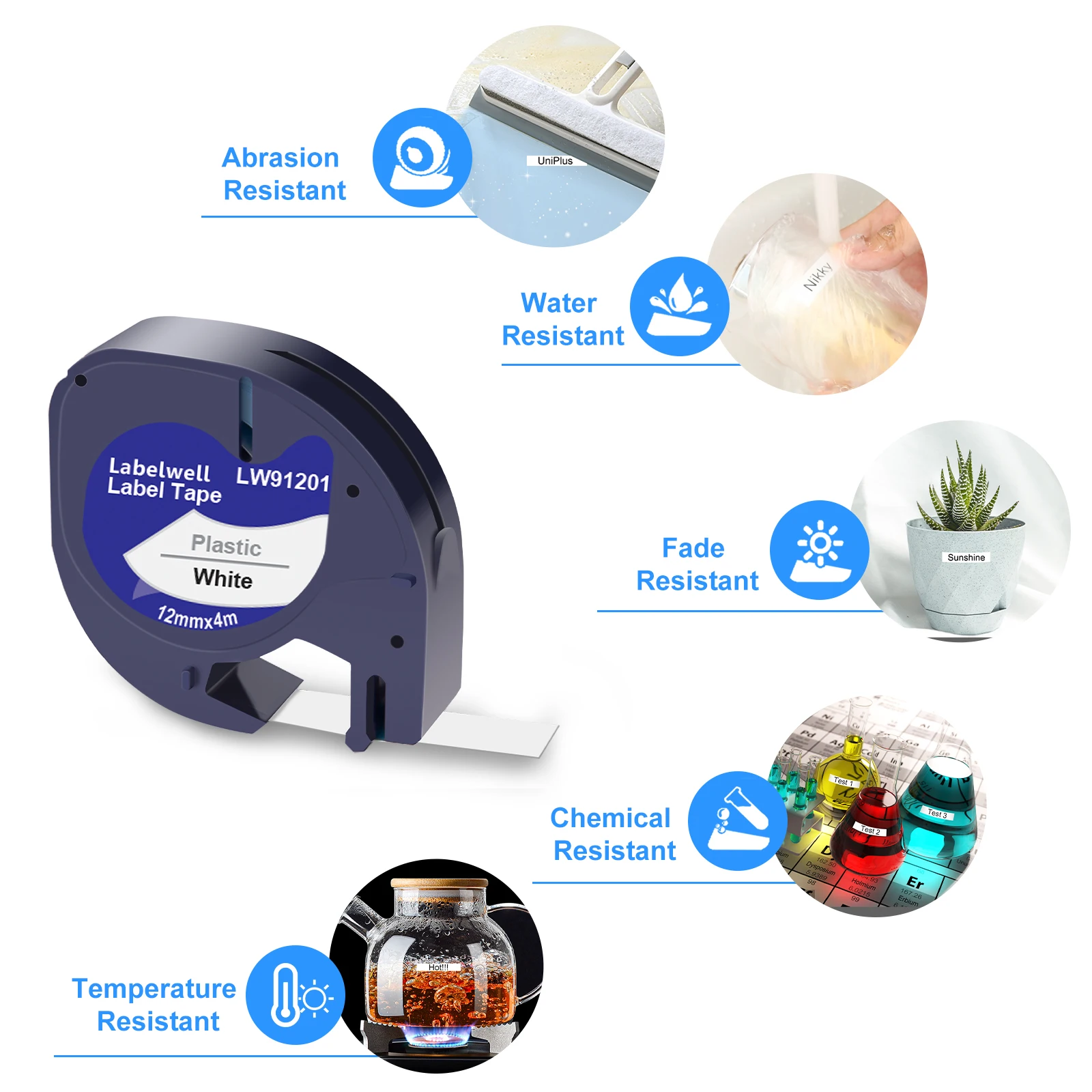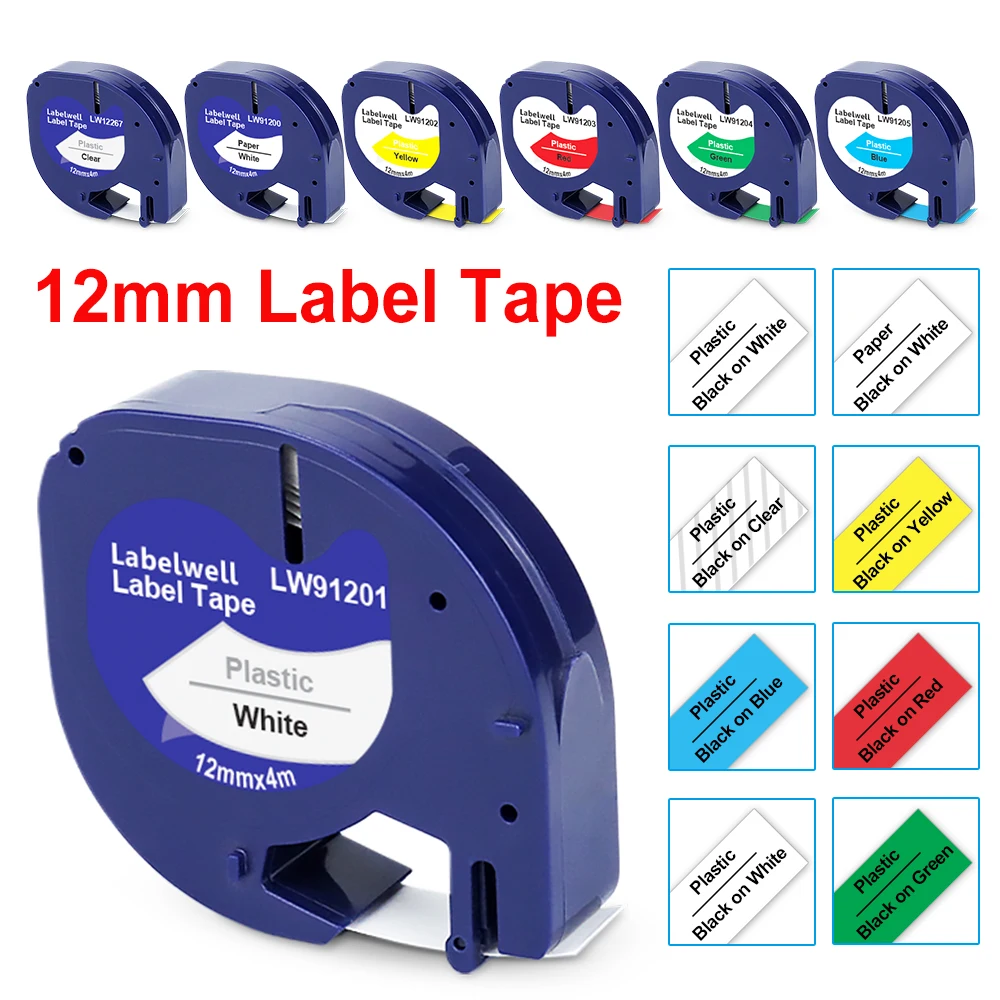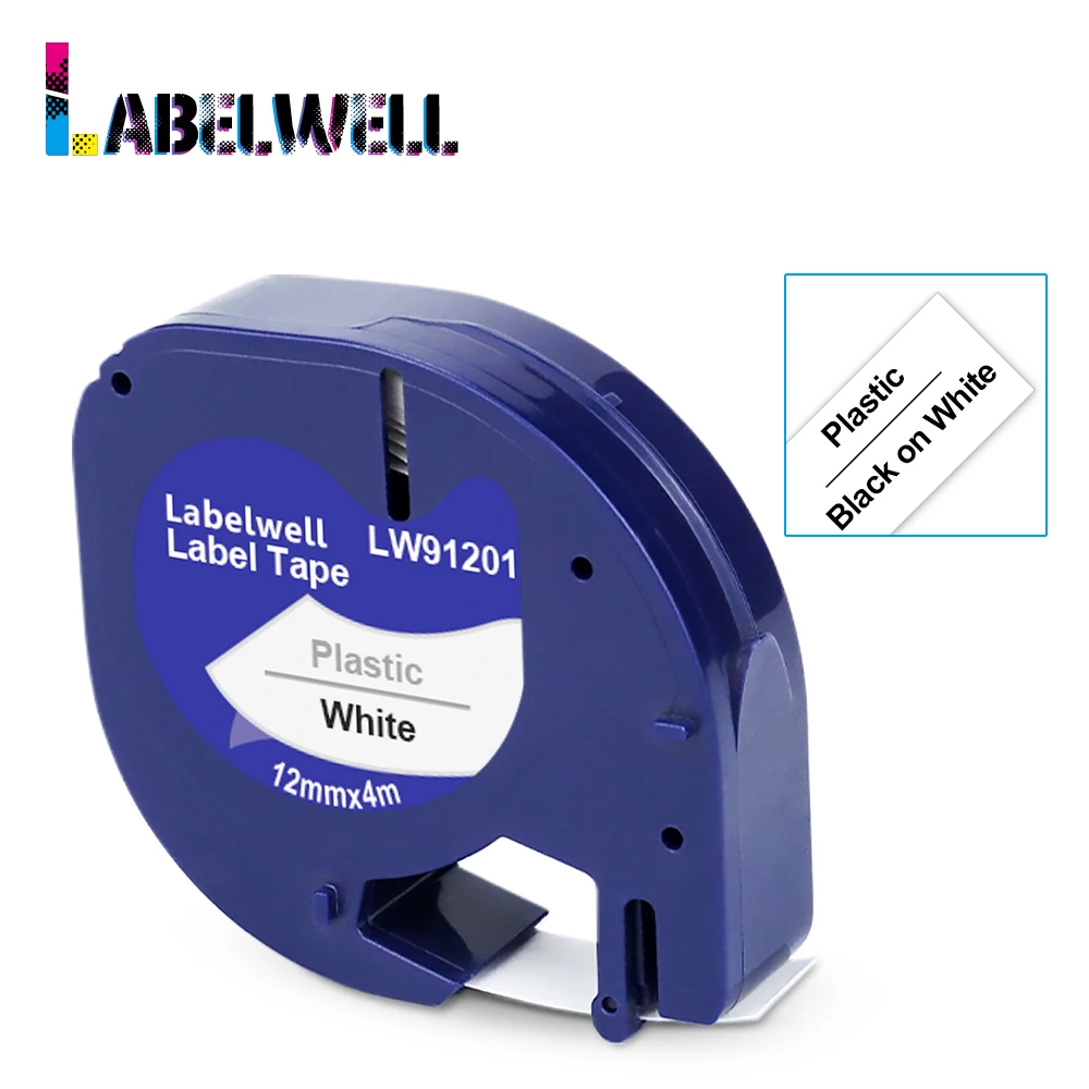 Labelwell 1Pcs 91201 Compatible for Dymo Letratag 12267 91201 91202 91203 91204 91205 91200 12mm Tape Compatible for Dymo Letratag LT-100H LT-100T QX-50 Label Maker