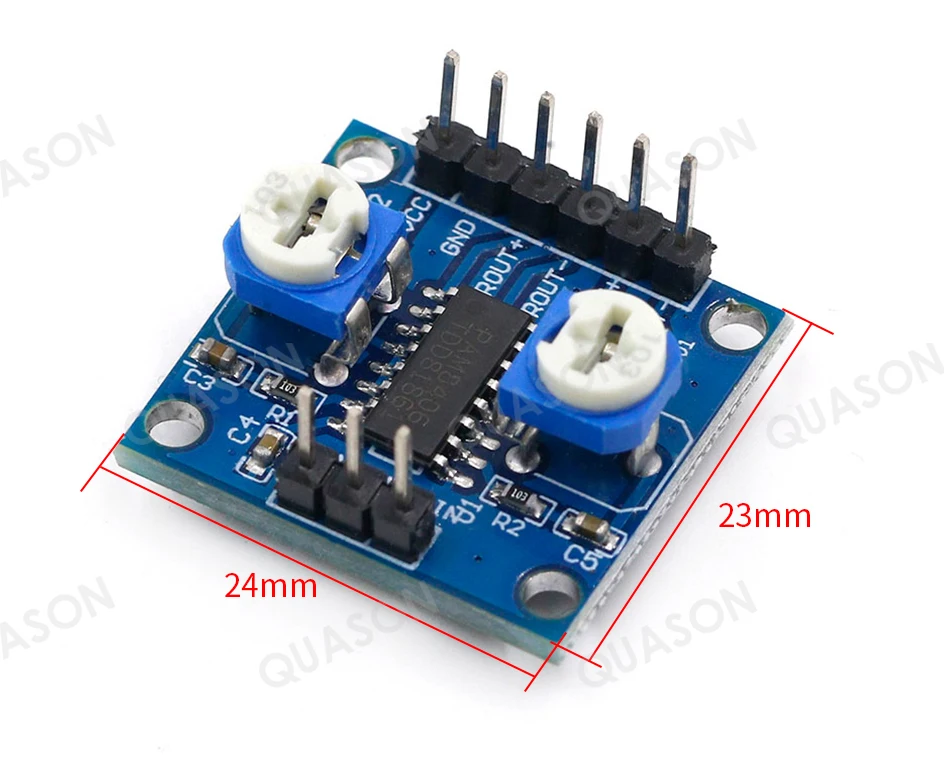 3.The two-channel stereo,5V power supply can output 5W + 5W power,directly drive 4Ω,8Ω speakers , output power , full of energy , good sound quality,with left and right channel volume adjustment.