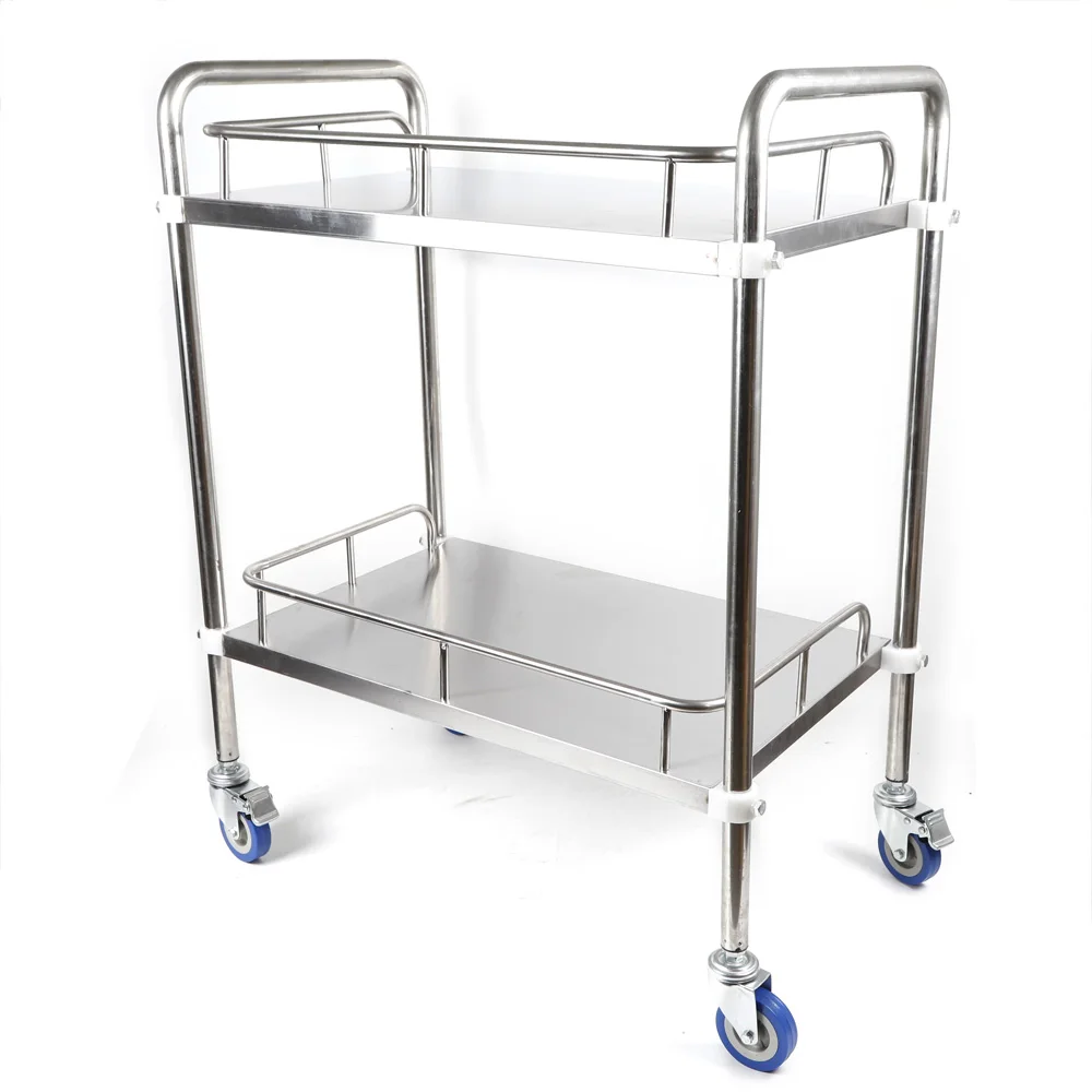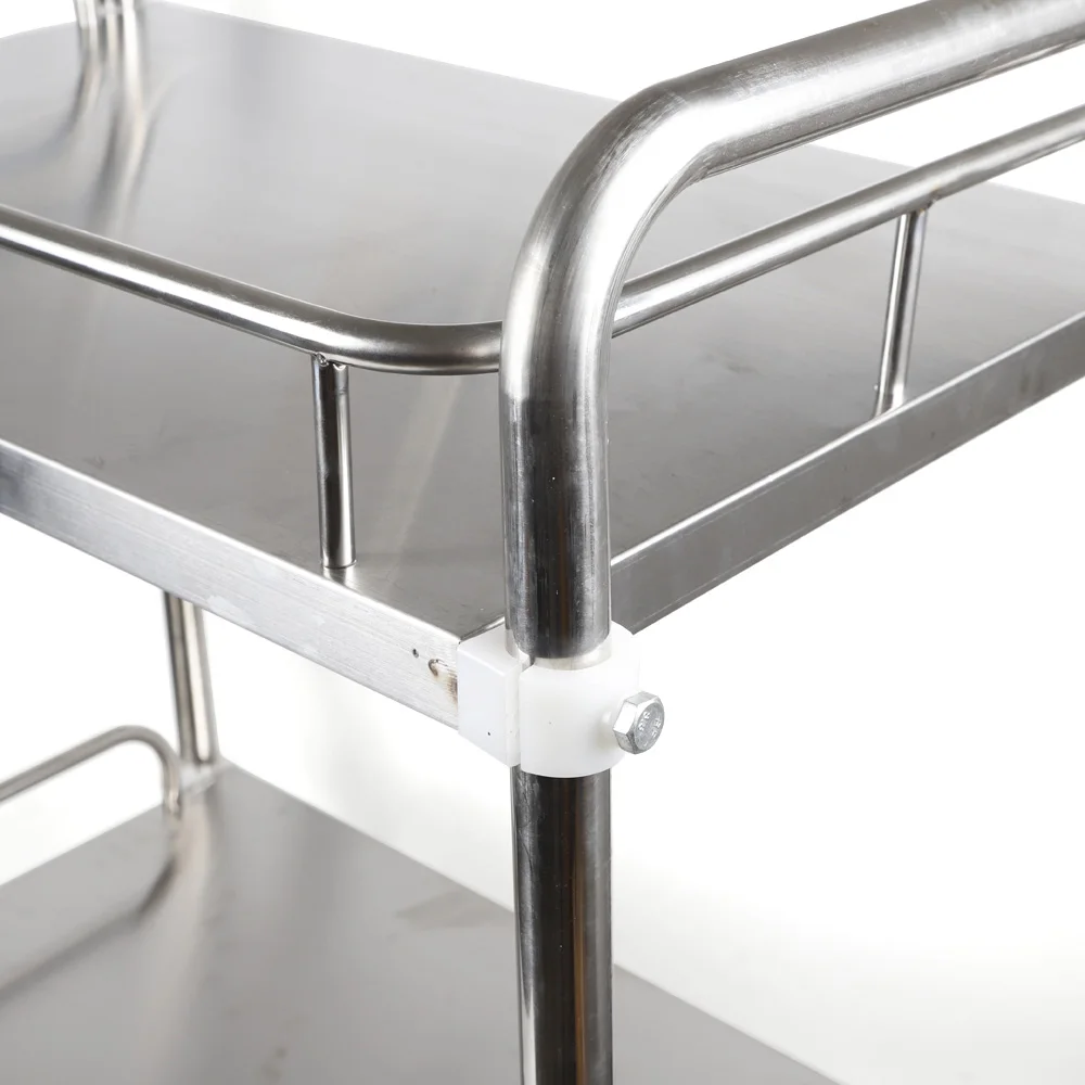 Hospital Medical Lab 2 Layers Cart Trolley Stainless Steel Serving Equipment
