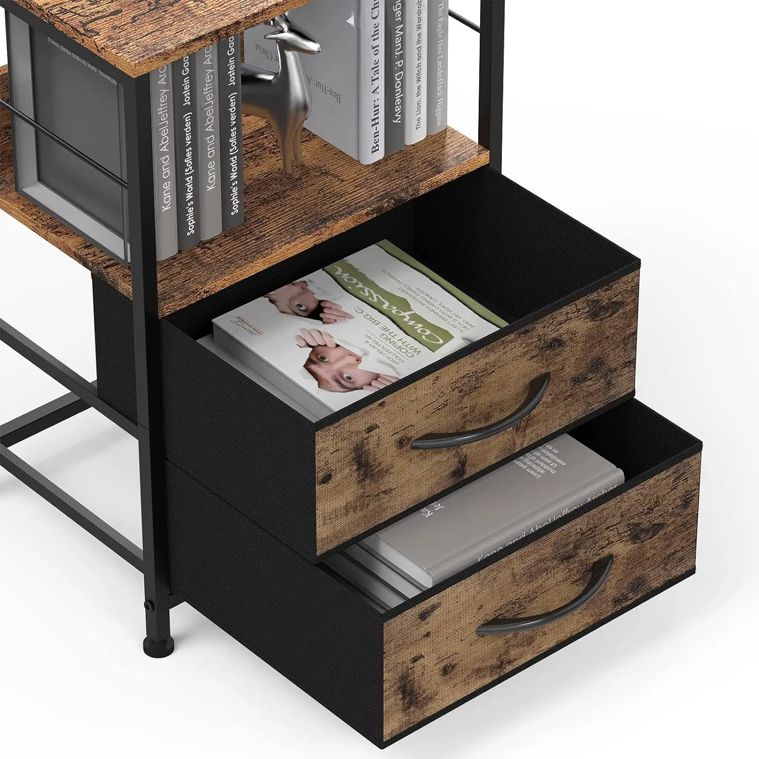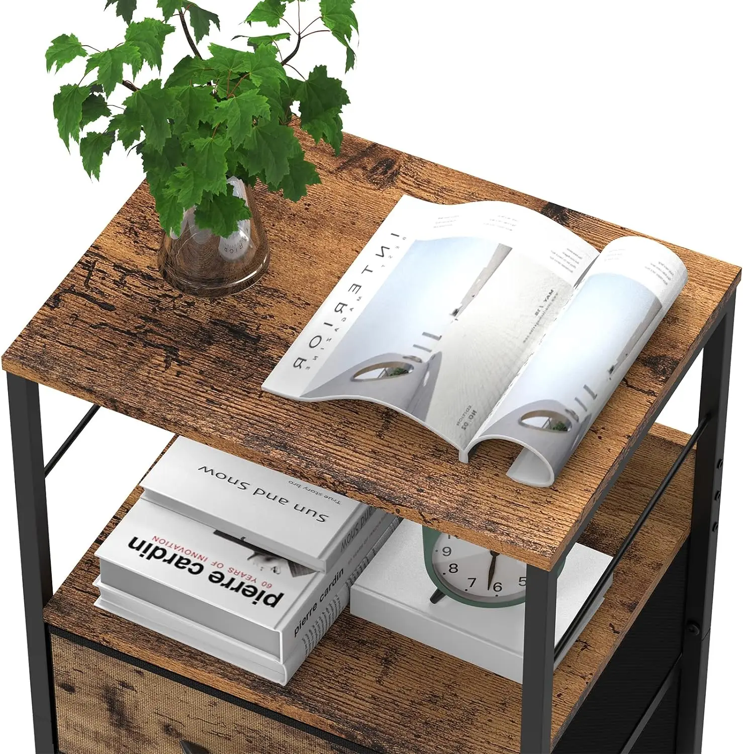Ample storage space: The end table features two drawers and an open lower shelf, providing ample storage and organization space. The high-quality fabric drawers are capable of withstanding heavy weight and are easy to clean.