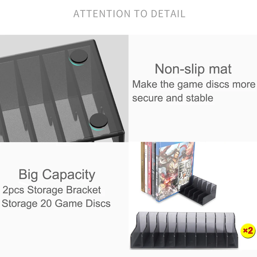 Description:1.Material: ABC2.Color:Black3.Package included: 2pcs per Set4.Each stand could hold 10pcs disks or Card boxPackage Contents:2×CD Storage B…