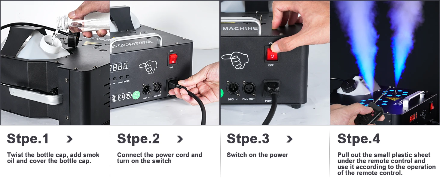 1. Don’t add tinder liquid such as oil,gas ,perfume and etc. in fog machine.