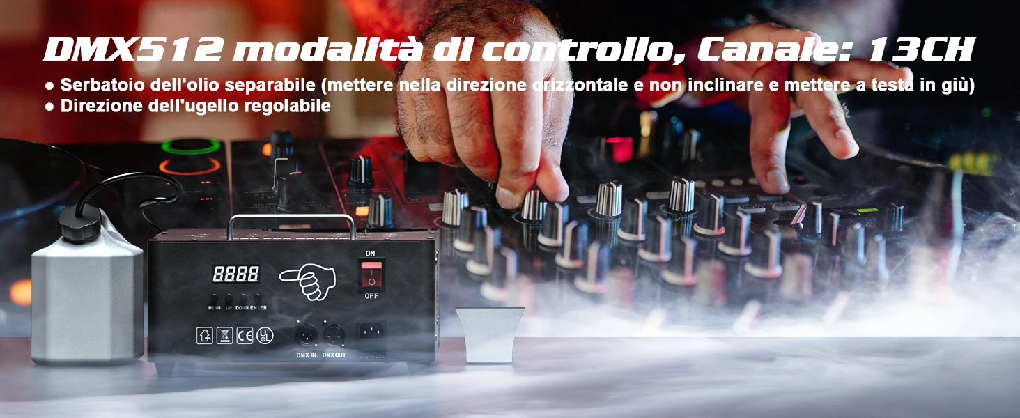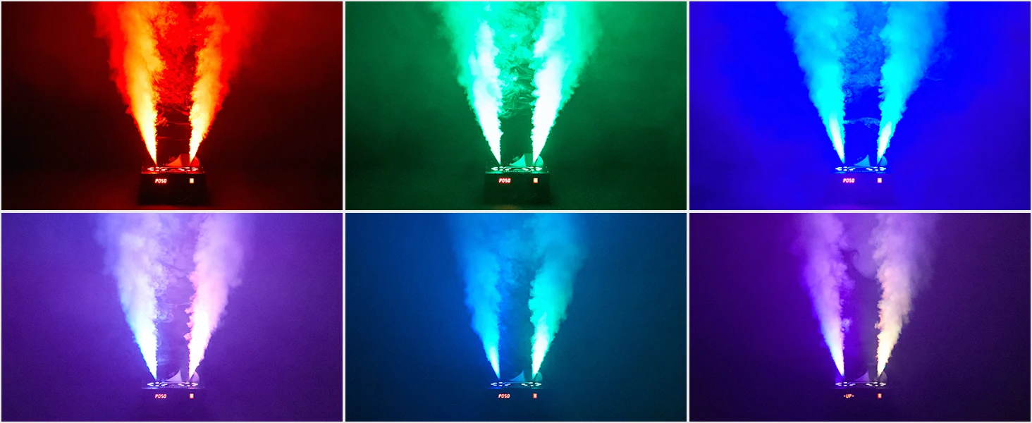 2000W Double-tube Adjustable Fog Machine8+8 RGB 3in1 LEDs DMX512 mode (Individually usable lights)DMX512 control mode, channel: 13CH★ Separable oil ta…