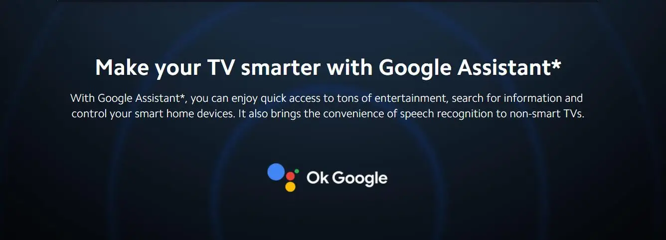 With Google Assistant*, you can enjoy quick access to tons of entertainment, search for information and control your smart home devices. It also brings the convenience of speech recognition to non-smart TVs.
