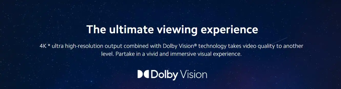 4K * ultra high-resolution output combined with Dolby Vision® technology takes video quality to another level. Partake in a vivid and immersive visual experience.