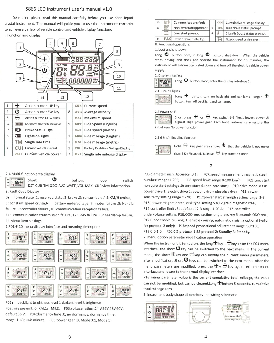 ◆Display panel shows the battery power,0-9 PAS gear level,distance,time,max speed,current speed,average speed,etc.