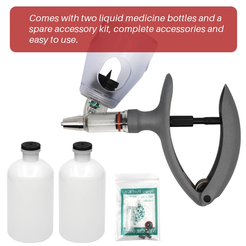 Features of the syringe:1. Can be connected to the standard vaccine bottle within 100ml.2. For animal vaccination and so on.3. It adopts steel ball pi…