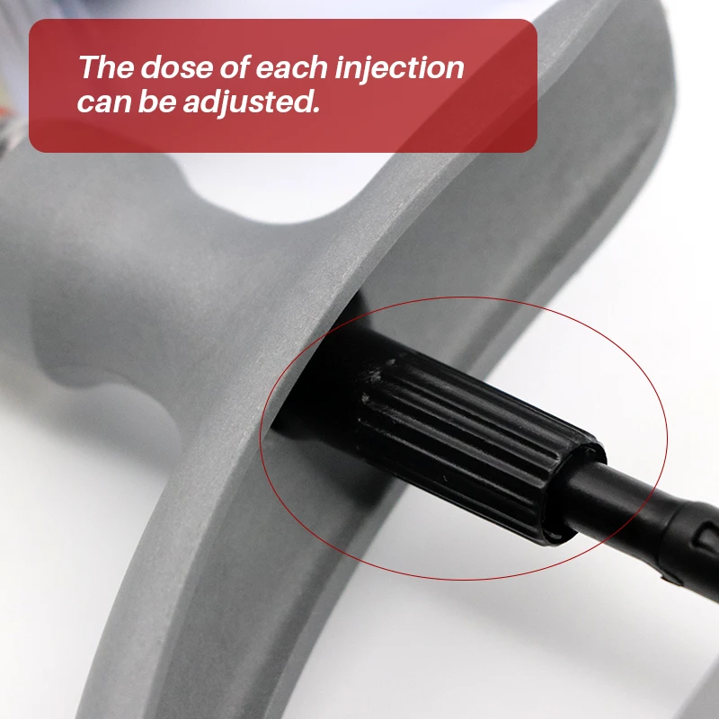 8. After use for a period of time, if the piston is stiff, turn the knob, remove the injection tube, and smear the piston ring with olive oil or edible oil for lubrication.After the use of live vaccine, syringes should be disinfected, and non-irritating and non-corrosive chemical disinfectant can be used before cleaning to soak and disinfect, and then clean.