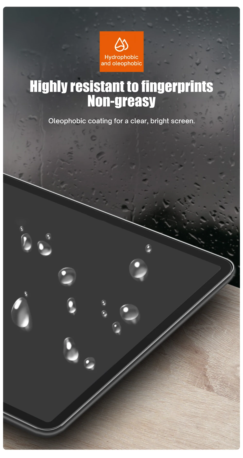 Oleophobic coating for a clear, bright screen.