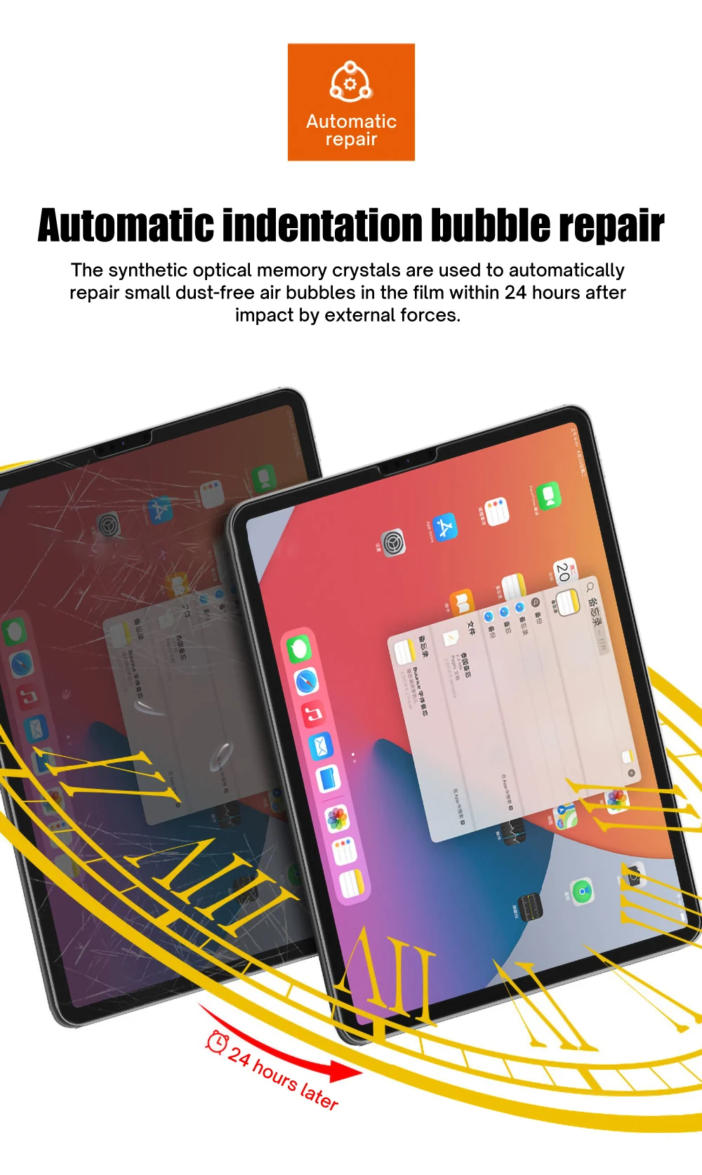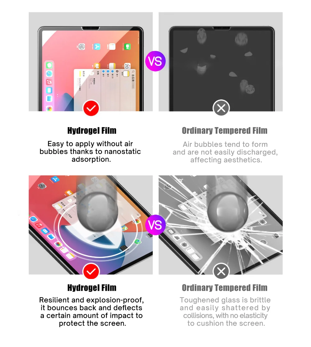 Before installation, keep the screen is clean, no dust. If there are still bubbles on the screen after this film is pasted,please dont tear off the new film immediately. Please be patient and let the hydrogel film repair automatically.