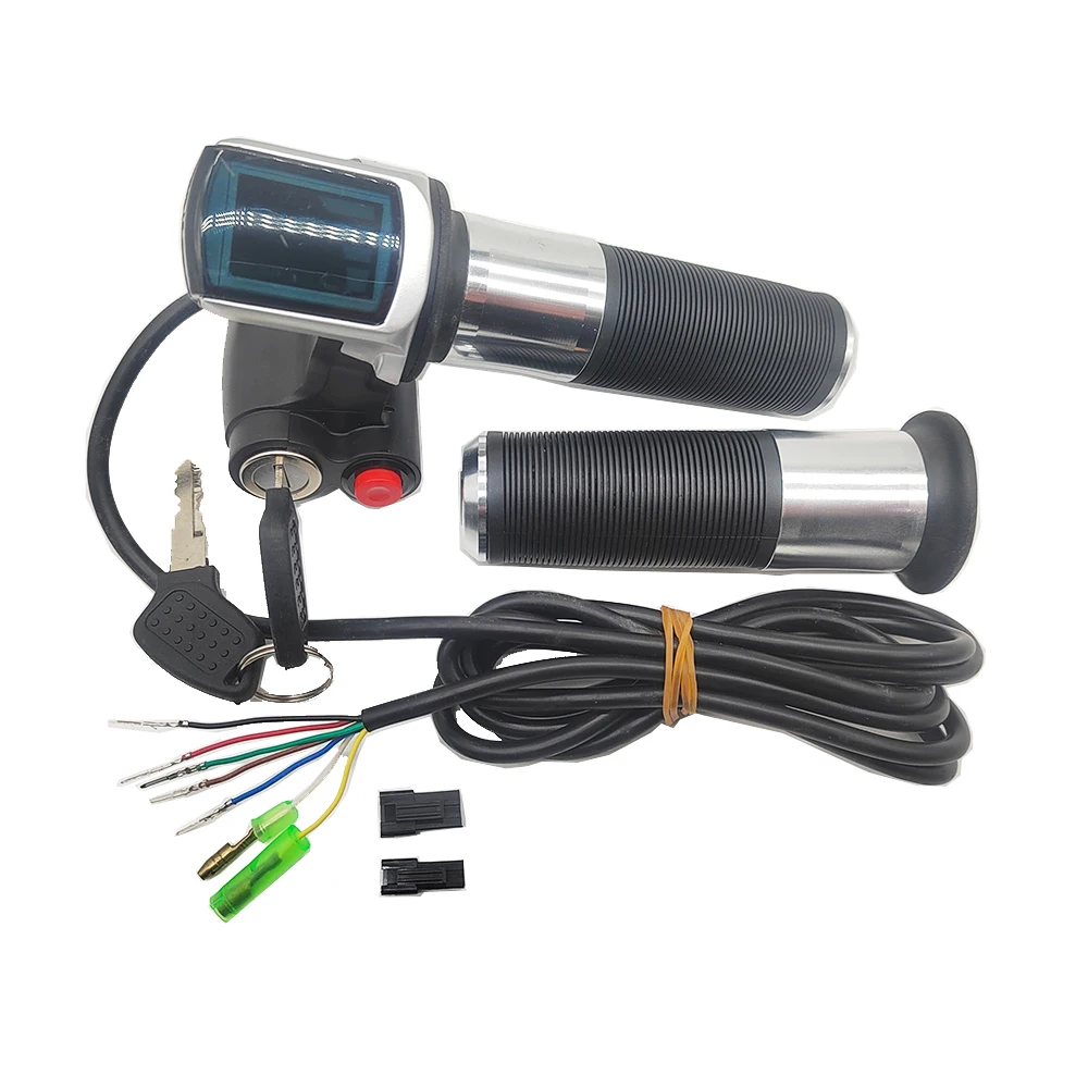 1set Aluminium Alloy Electric Bike Twist Throttle Grips with LED Display Tricycle Speed Control 5 wires scooter Accelerator
