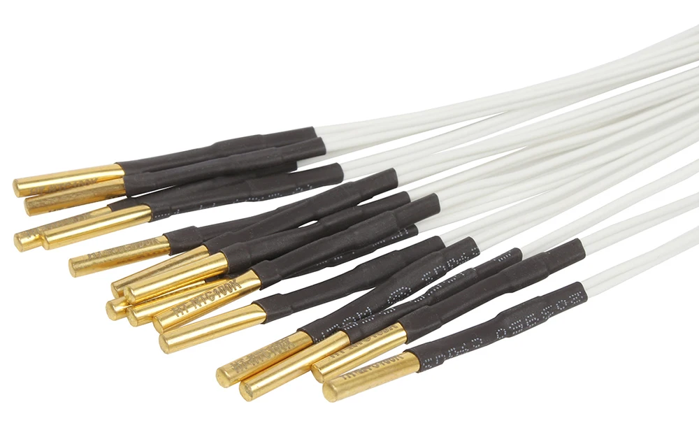 4. HT-NTC100K thermistor adopts white high-temperature cord, can bear higher temperature. And for customers' convenience, the wires adopts line connection, the customer can tear the wires depends on their application. The high temperature line is double thicker than others in the market, not easy to break off.