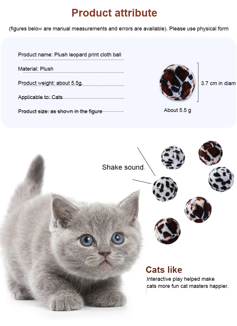 5/3/1PCS Cat Toy Pet Leopard Ball Cat Toy Interactive Sound Funny Kitten Ball Toy Cat Playing Toy For Pet Cat AccessoriesDescription:1.Spherical shape…
