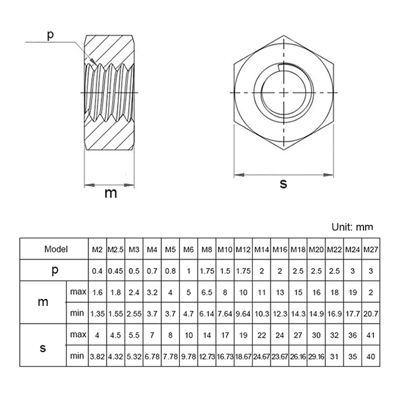 Specification:hex nut Material: carbon steel Size Options: M2 M2.5 M3 M3.5 M4 M5 M6 M8 M10 M12 M14 M16 M18 M20 M22 M24 M27…