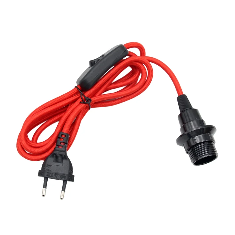 Euro Plug Power Cord with ON/OFF Switch and E14 Threaded Lamp Holder1. Conponent: EU Plug Textile Power Cord+On/Off Switch+E14 Lamp Holder with Lampsh…