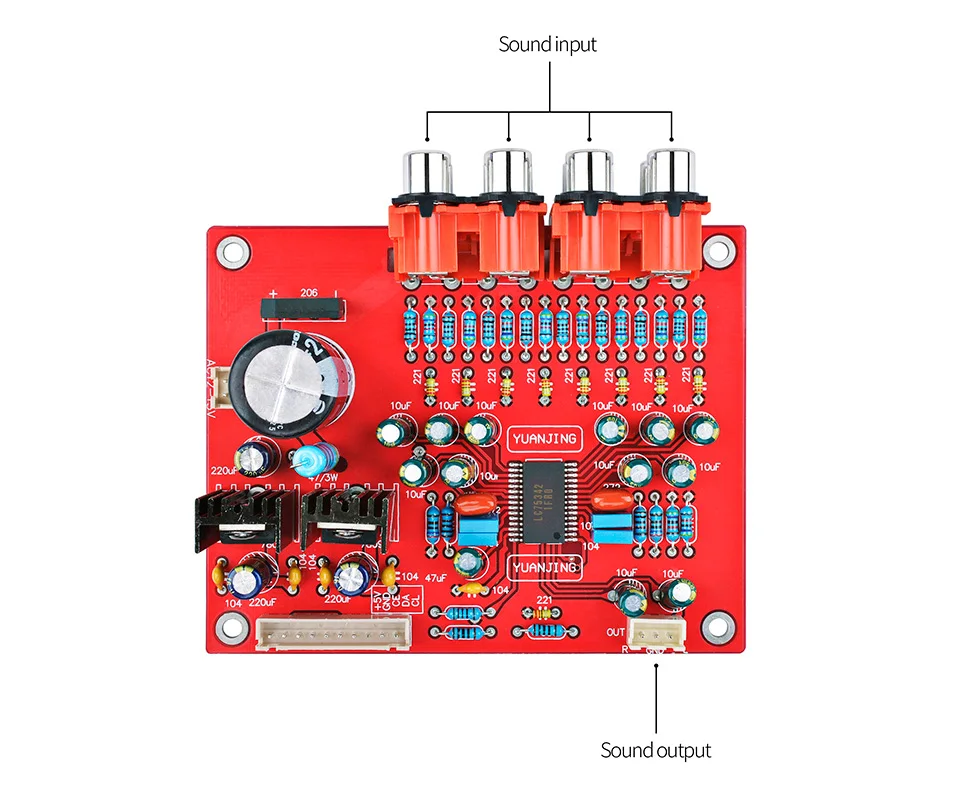 The LC75342 is a very good electronic tone IC from SANYO. The chip features low distortion, high signal-to-noise ratio and large dynamic range. Built-in four-channel audio signal input, 30DB gain amplifier, 80-level volume adjustment, treble +-10DB, bass +-20DB, tone adjustment.