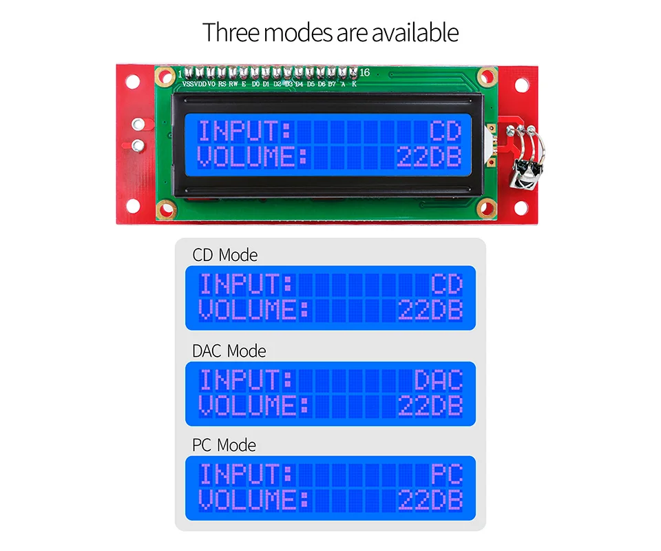 1. The remote control and front code switch can control the signal source input / volume size / gain boost / treble / bass adjustment display