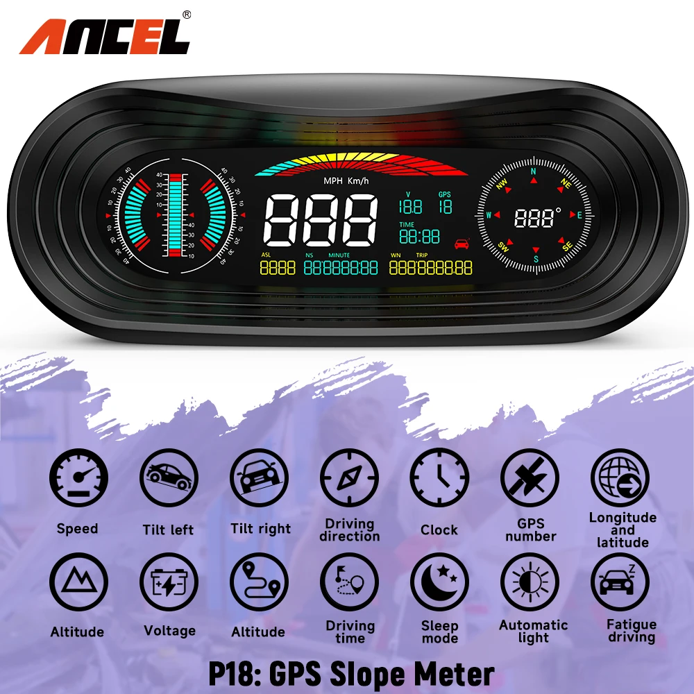 ANCEL P18 Head Up Display Car Speed OBD2 GPS HUD Clock Glass Projector Electronics Car Accessories For All Car