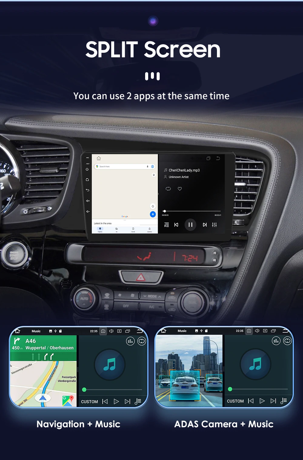 Split Screen : You can use 2 apps at the same time (such as: Navigation + Music , ADAS Camera + Music ,etc.)