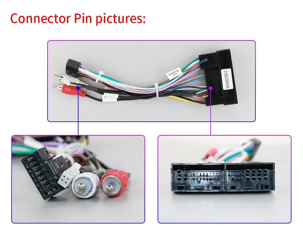 (Notice: if the connector pin to install with the car wires' cable is not the same as them which needs to contact the after-sale service to order special wire for installing)