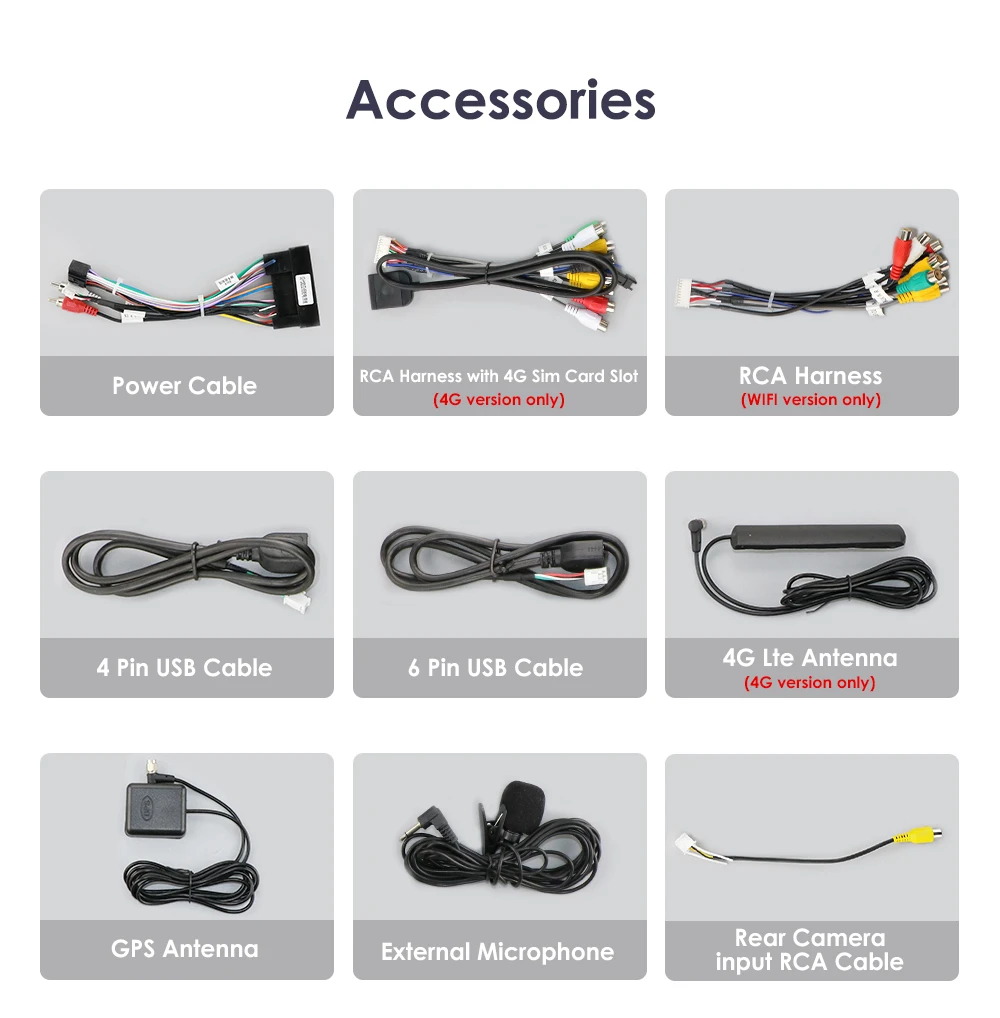 Standard Accessories: which ship with the head unit together(but please pay attension to the red words of accessory whether can get or not which depends on the item option you choose to buy it)