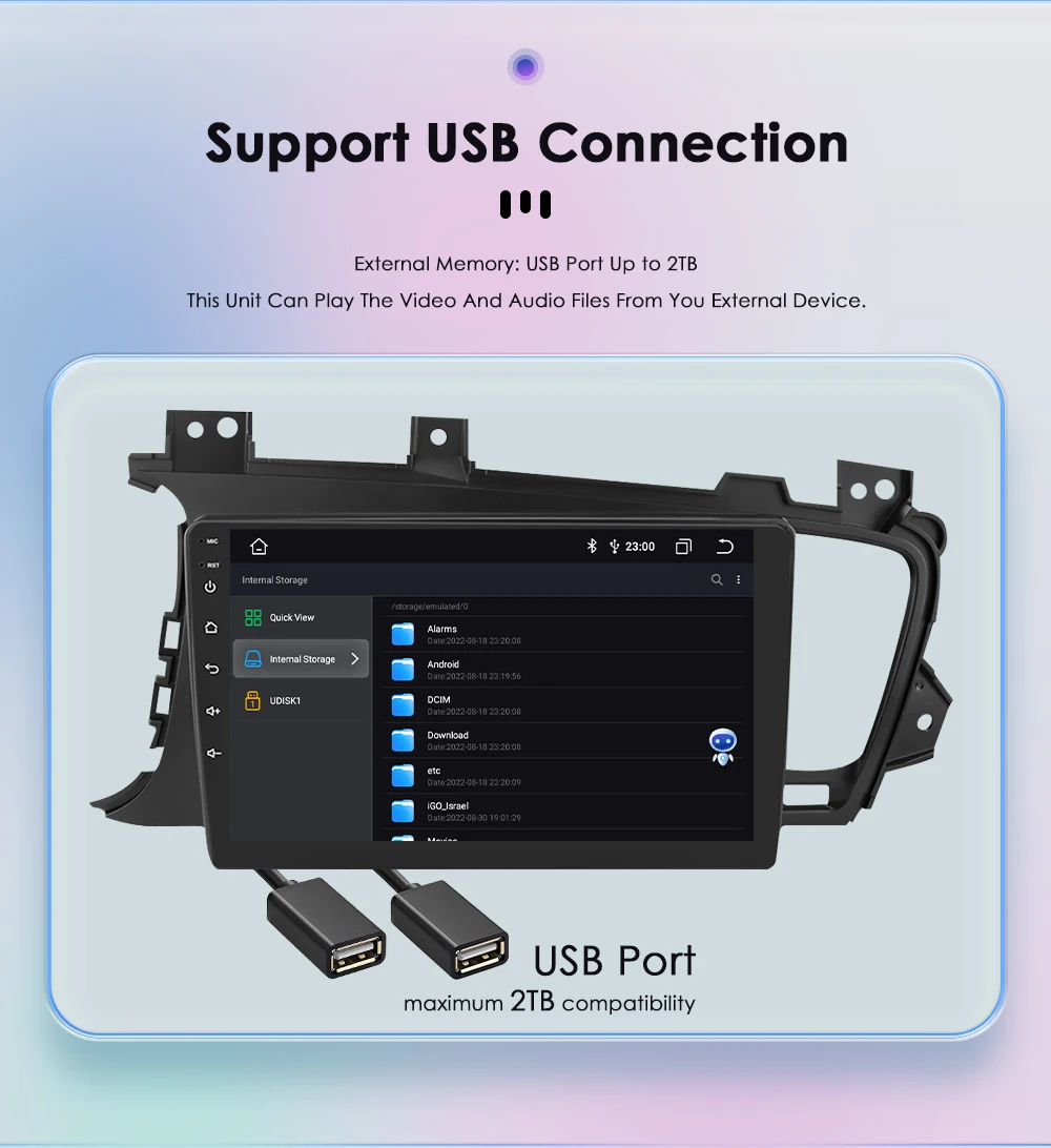 External Memory: USB port up to 2TB,this unit can play the video and audio files from your external device.