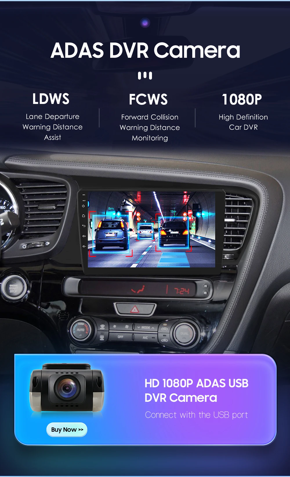 HD 1080P ADAS DVR Camera(Needs to order separately) --connect with the USB port: LDWS(Lane Departure Warning Distance),FCWS(Forward Collision Warning Distance), 1080P(High Definition Car DVR).