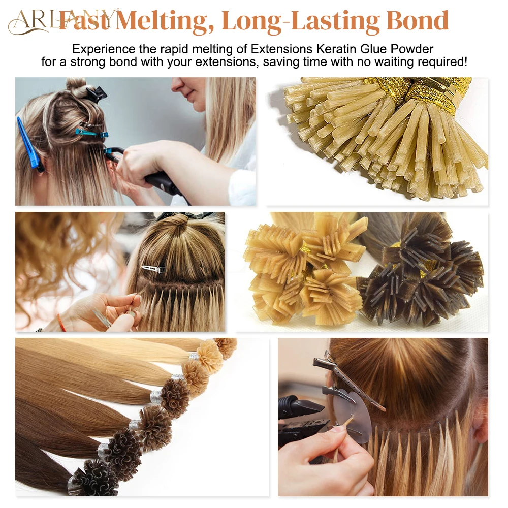 ARLANY Keratin Glue Powder for Pre-bonded Extensions Italian Keratin Glue Powder Keratin Glue Hot Melting Shrinkies Extension Tool Keratin Bonding Pow…