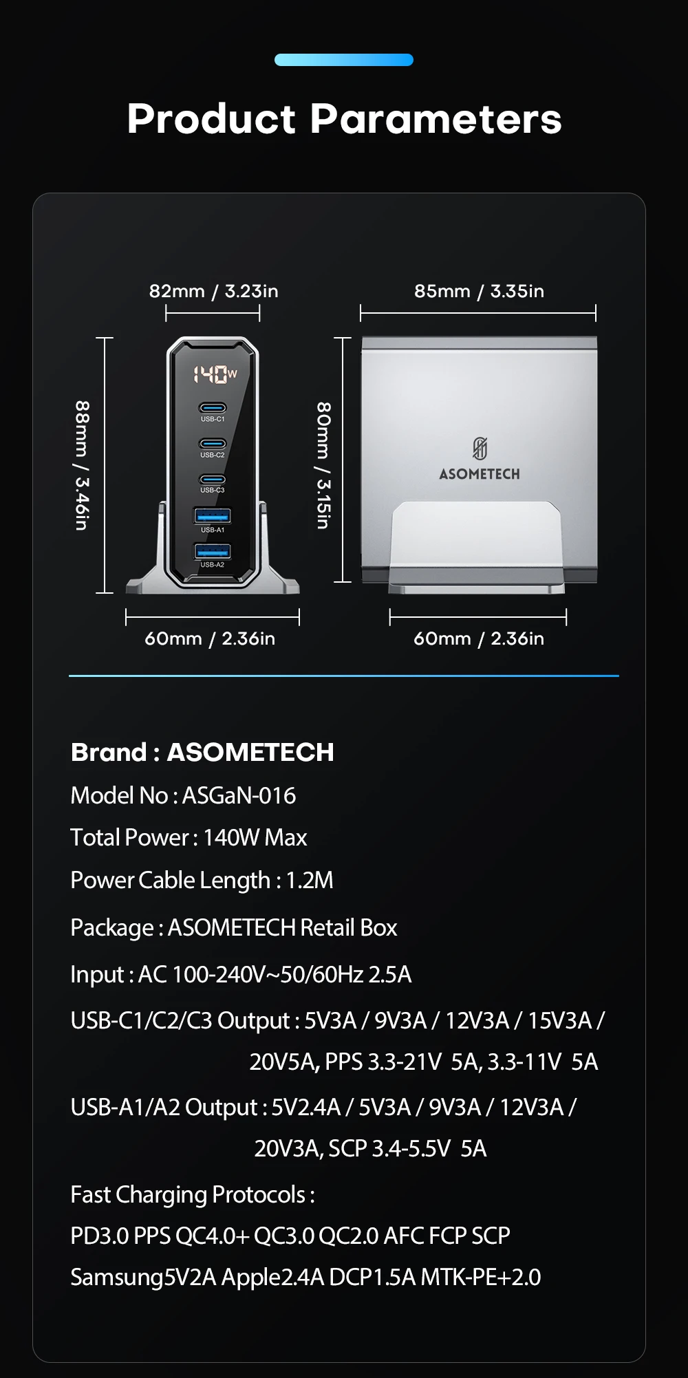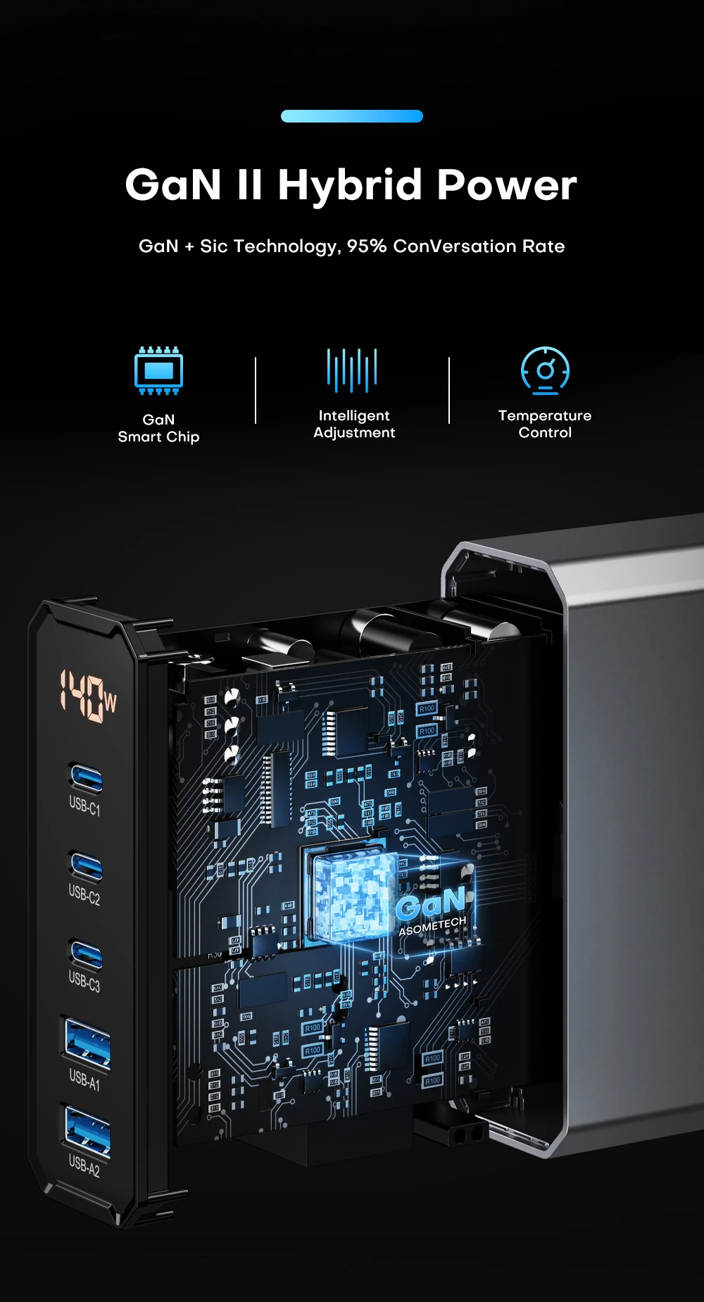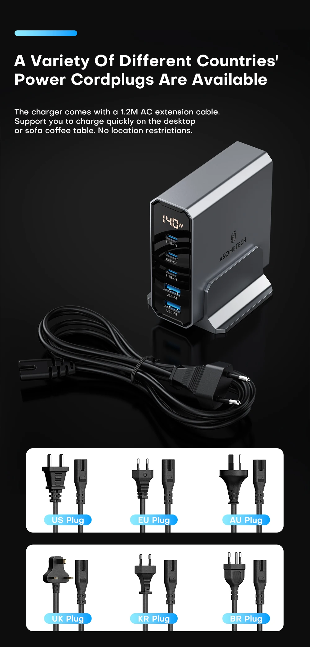 ASOMETECH 140W 5-Ports Desktop GaN Charger