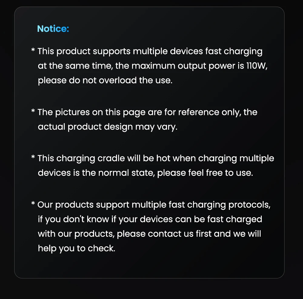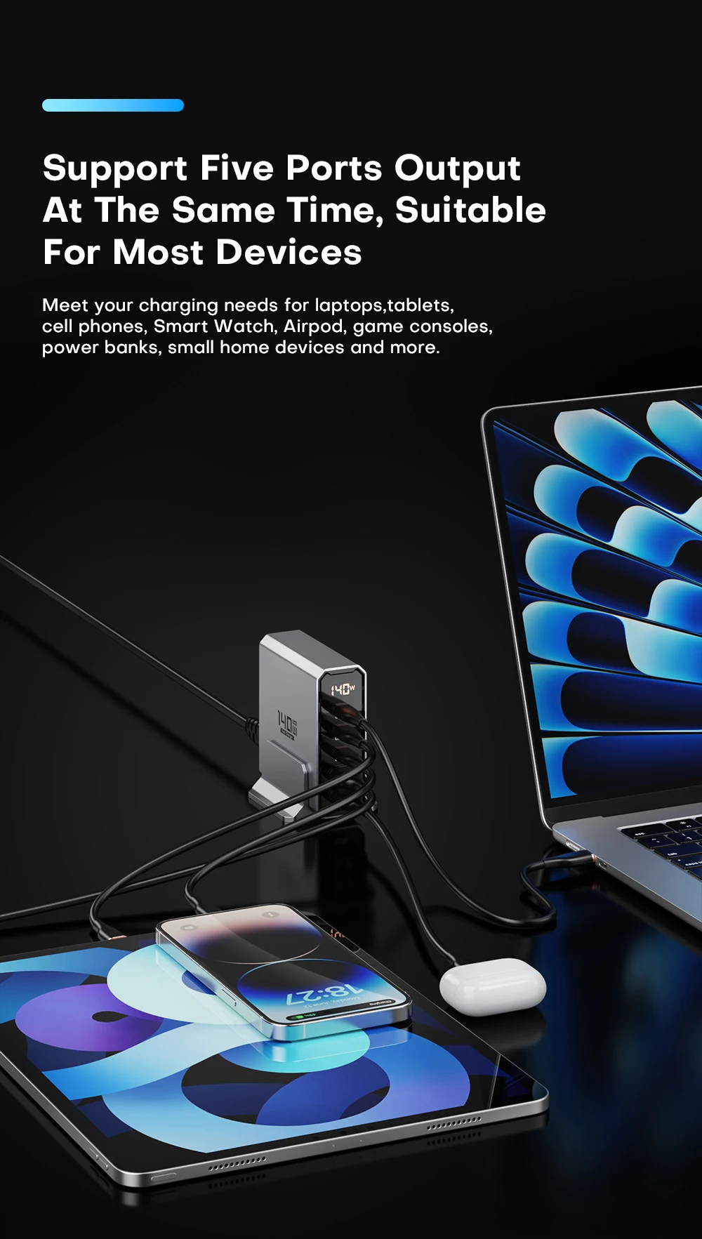 ?【Thoughtful Accessories】:We have equipped a sturdy and practical U-shaped stand and a 1.2M power cable to help support the charger so that it can be placed securely on the desktop and make the desktop neat and tidy.?【WIDE COMPATIBILITY】: This 5-port desktop charger supports most charging protocols on the market. Compatible with MacBook Pro, MacBook Air, Lenovo, iPhone 14/13/12 series, Galaxy S23/S22 series, iPad, Steam Deck and more!