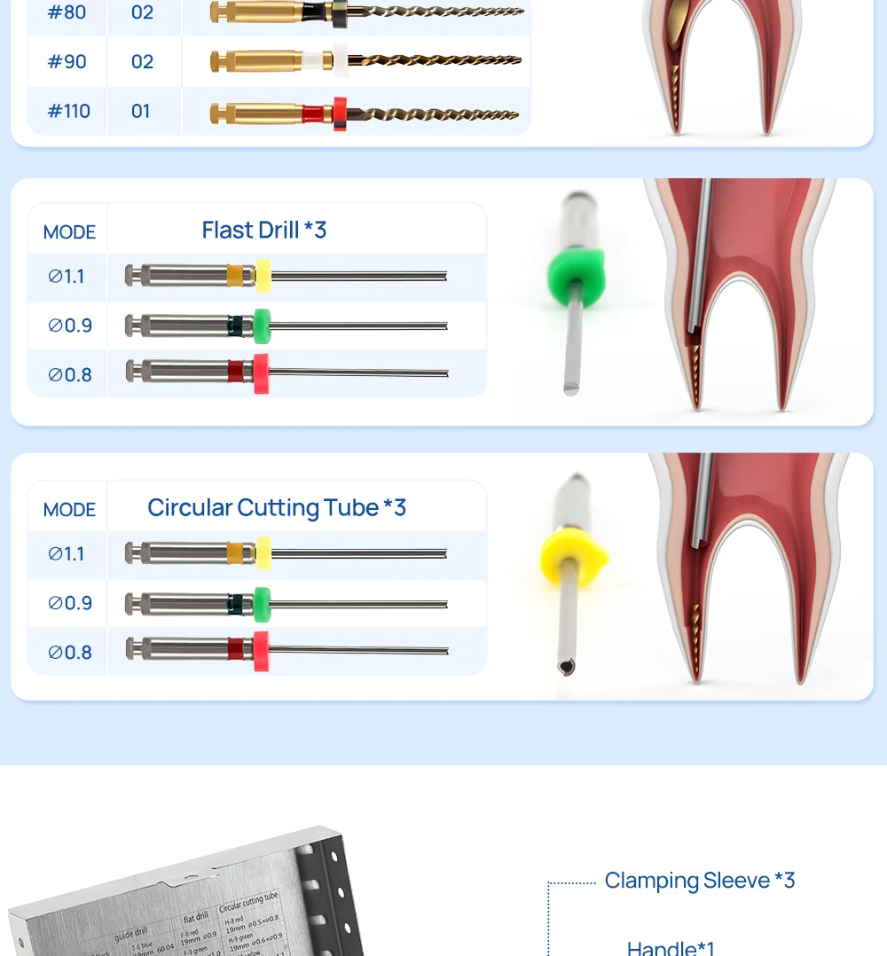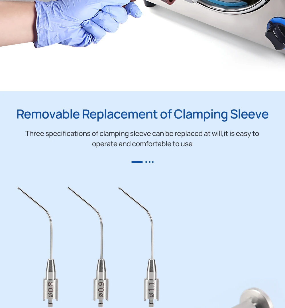 2、Equipped with three different sizes of work tips and it can meet multiple clinical needs.