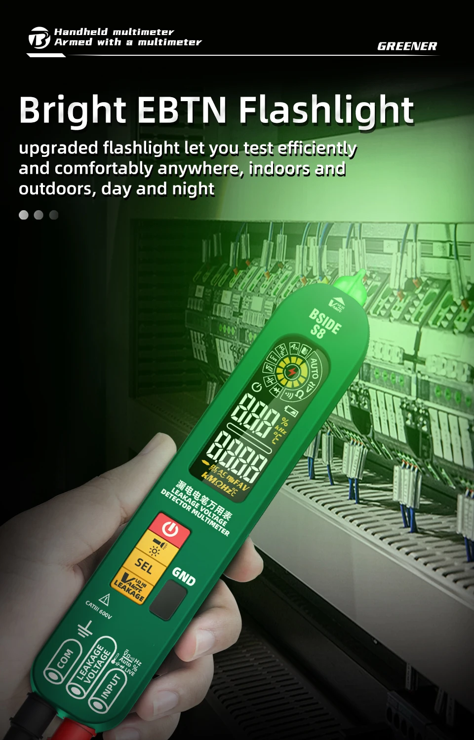 [Leakage Voltage and Environment Tempature Test]: The intelligent multimeter can measure leakage voltage and environment tempature. With this electrical voltage tester, you can solve industrial, vehicle and household electrical problems, etc.