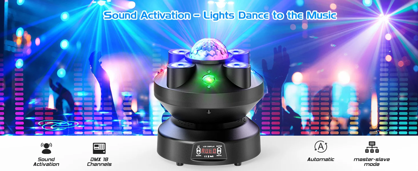Operation mode: automatic, voice control, DMX,master-slave mode