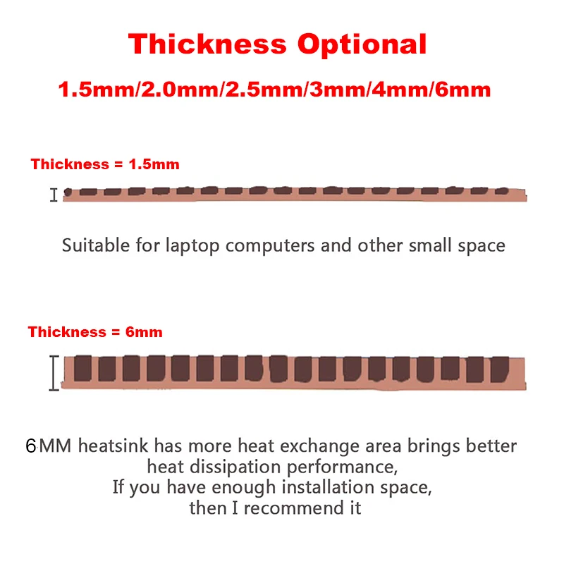 Heatsink Thickness: 1.5mm/2mm/2.5mm/3mm/4mm/6mm as optional