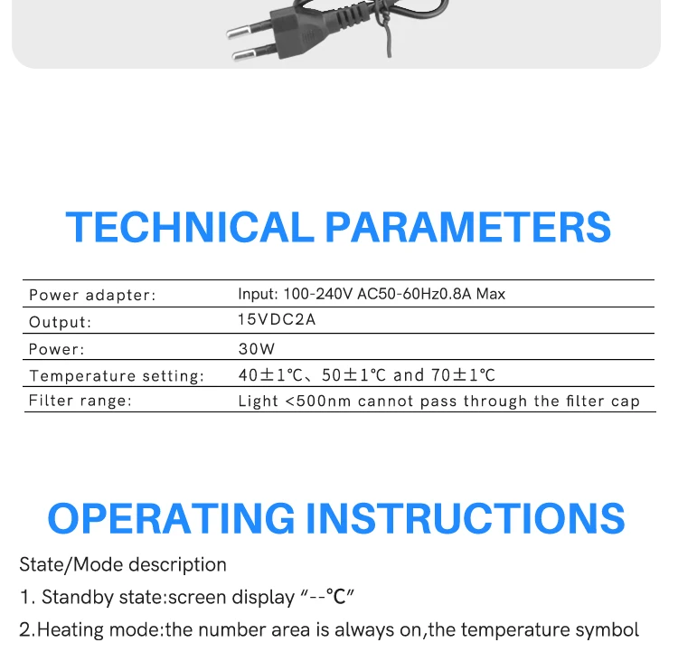 3.2 Heating temperatue range:40℃-70℃,±1℃