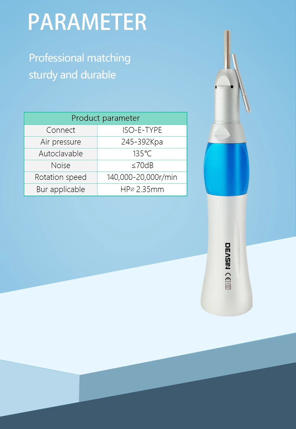 Specification:Brand: deasinAir pressure:245-392KPaWater consumption:50ML/minAir consumption:1.5L/minRotation speed:14,000-20,000r/minNoise≤70dBSterili…