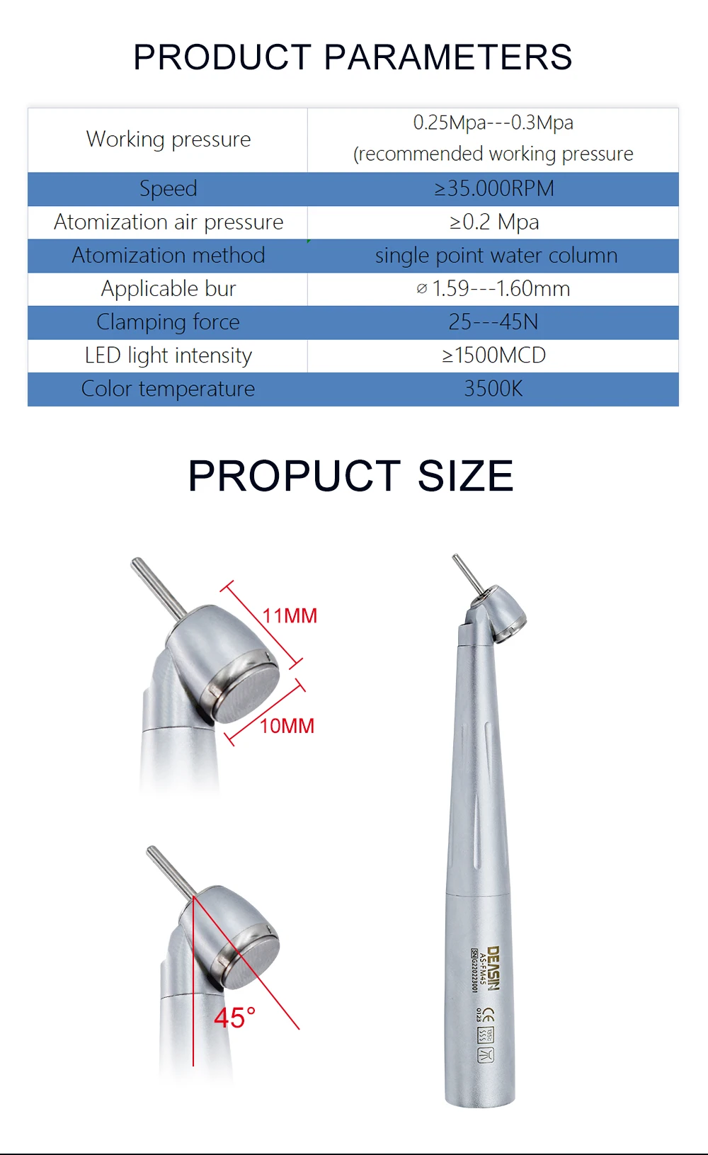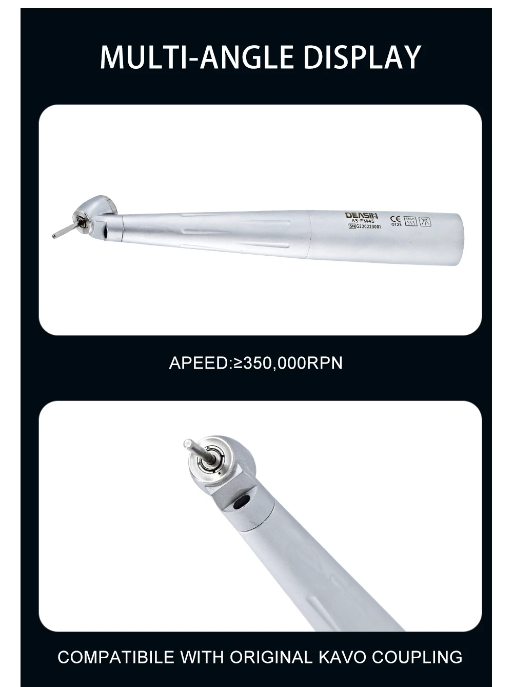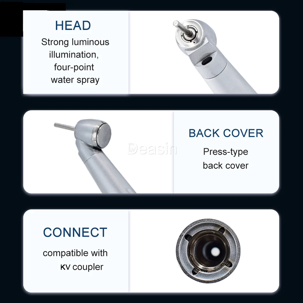 Handpiece Product Features:Brand: DEASIN (Made by Asin dental)1.Stainless body. This is a dental fiber optic high speed turbine handpiece which is Fit…