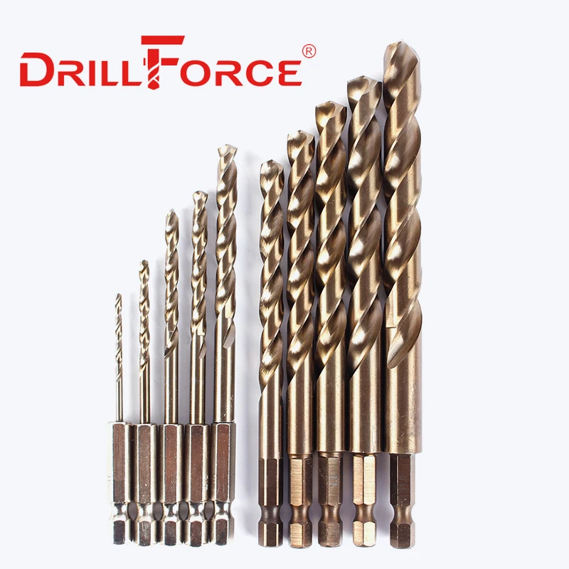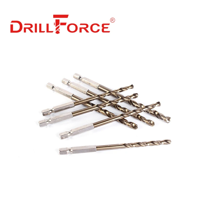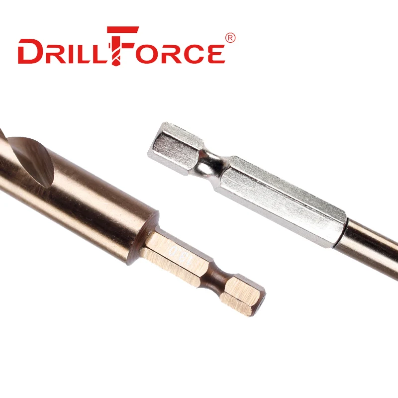【HSSCO M35 Cobalt】Cobalt High speed steel (HSSCO) with classic surface treatment gives Drillforce Hex drill bits great durability and prolongs 3 times longer life than ordinary drill bits without coating.