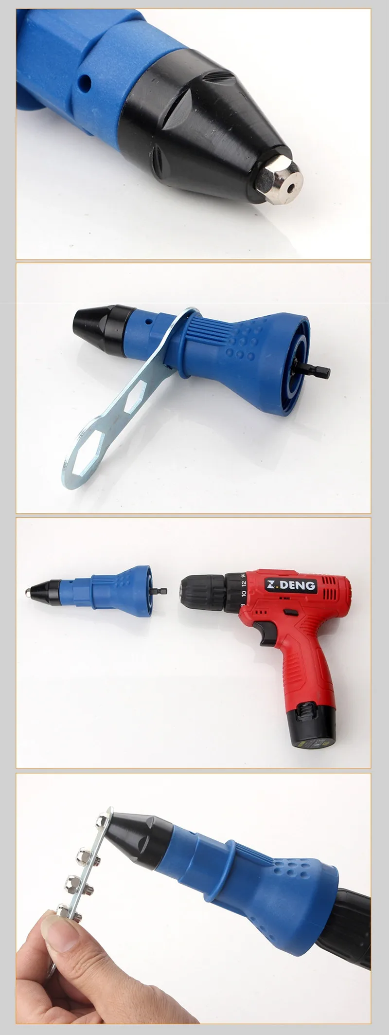 Electric Rivet Gun Drill AdapterPower Source: work with the electric drillMAX RPM : 1000 RPMMin Torque Strength: 15 N.mMaterial: Carbon steel and plas…
