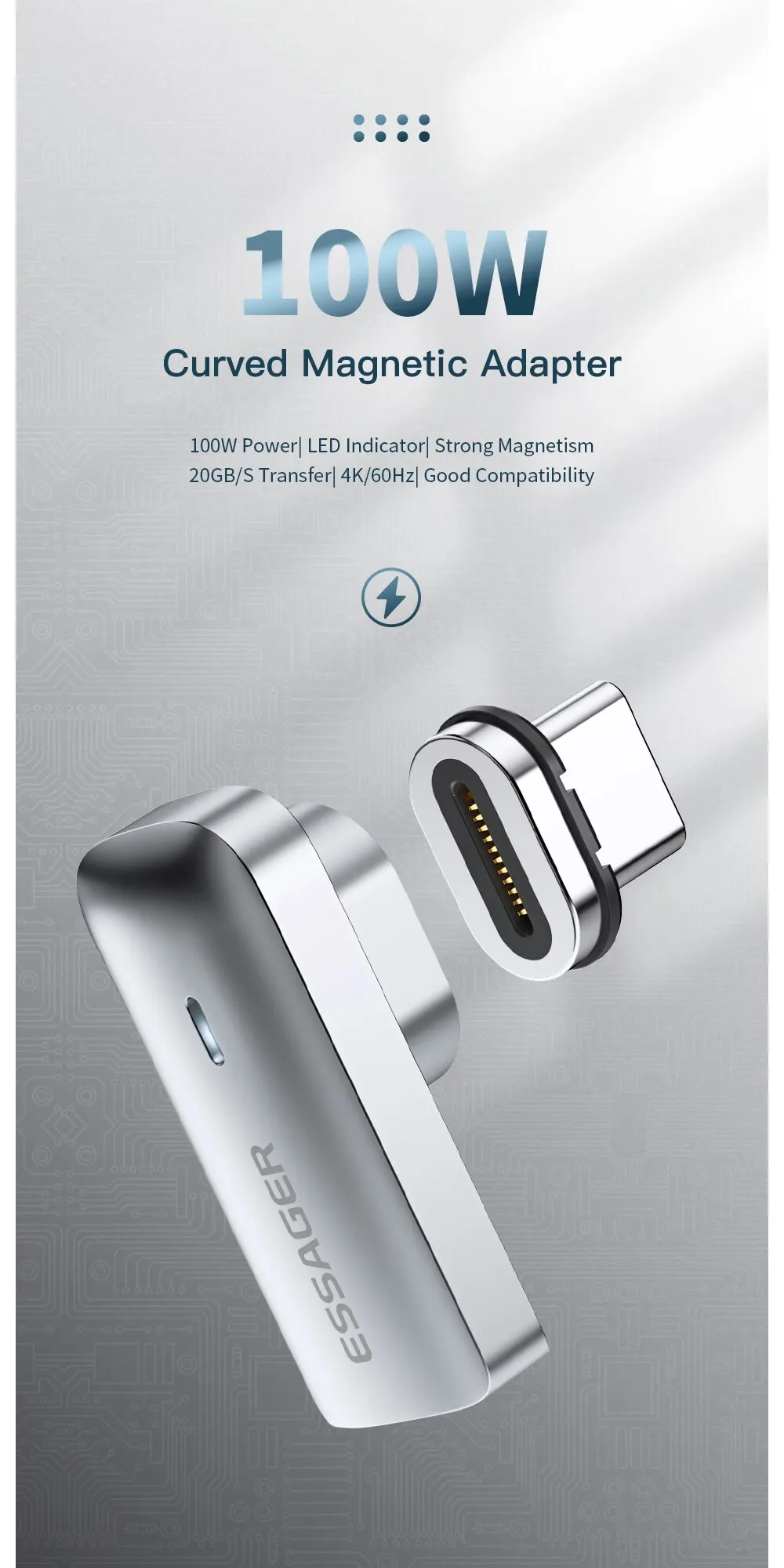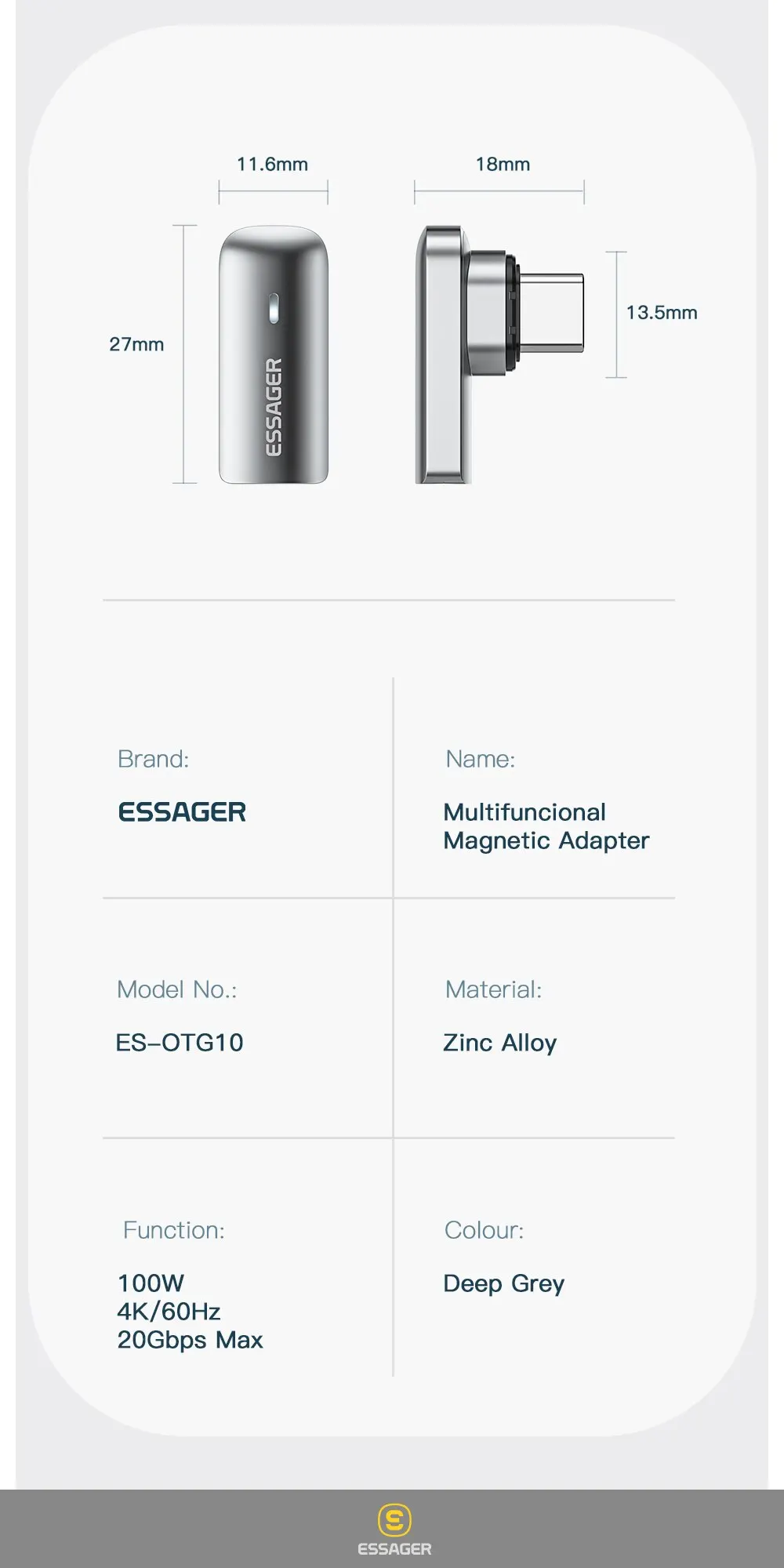 Product Specification:Brand: ESSAGERName: Ruijie full-featured magnetic adapterMaterial: zinc alloyColor: GrayData transmission: 20GbpsVideo transmiss…